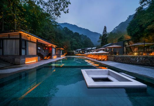 酒店坐落于中国道家发源地之一雾山,是由改革开放初期原6569工厂和原两河口电站改建的,整体融合了山林的幽静、旧年代的质感和现代高阶设计,置身其中,彷佛能听到岁月的呓语。 酒店共有10种共多间特色森林小屋,配有发电厂改建的工业风清吧 ,超有设计感的餐厅,以及超大的户外泳池和木屋入户私汤。 依山傍水,以星为被,住进森林小屋,泡一泡汤池,享受悠闲假期。 设计感十足的墨绿色吊灯和窗外的森林辉映,超级出片,超大户外游泳池,体验在山林和星空下畅游的感觉,酒店提供免费停车场,还可以带上宠物来撒欢哦,酒店还配有咖啡厅、棋牌室、河边茶坊、清吧。是个和亲朋好友度假的胜地。 宛如置身小瑞士的小木屋设计,镶嵌在郁郁葱葱之中 房间都有超大落地窗,户外是潺潺小溪和古树林立。独立入户和户外野趣私汤,私密性超强,房间装修超有设计感,配色低调高级,切割感造型的独立餐厅,绝美的氛围吊灯,四面落地窗和全玻璃屋顶,和亲友恋人在在山林小屋中享受一顿美食,乾杯举箸,相看莞尔,惬意十足。 1980年代发电厂改造的工业风清吧,里面保留了具有年代感的发电机作为装饰,配上现代化的吧枱,颇有赛博朋克之感。品一杯酒,在夜幕降临之时,聆听年代的故事。